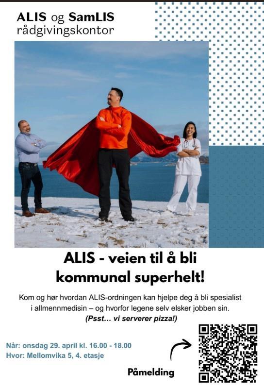 Er du nysgjerrig på fastlegeyrket og spesialisering i allmennmedisin?ALIS og SamLIS inviterer til informasjonskveld den 29 april Publisert av Lisa Vesterå